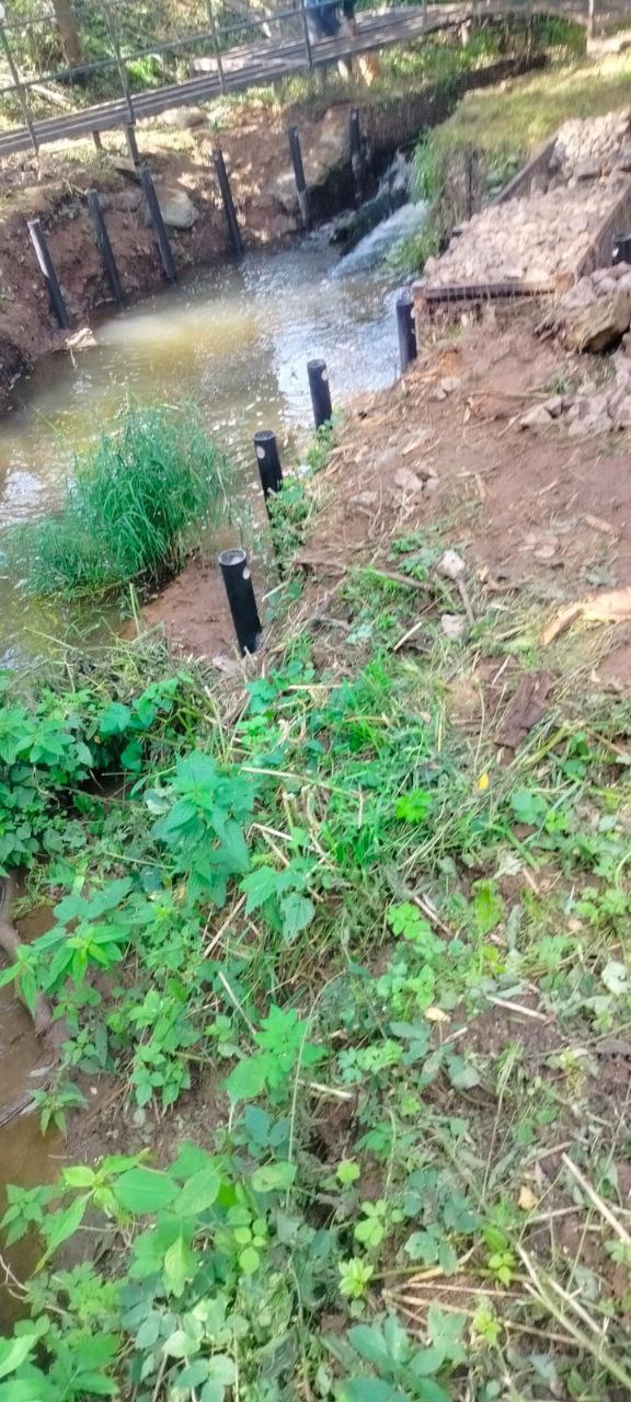 —Закрутили винтовые сваи для укрепелния берега реки