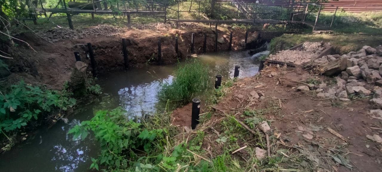 Компания «Сваекрутов» успешно выполнила проект по укреплению берега реки Нара в г. Серпухов Московской области. Заказчик столкнулся с проблемой обрушения почвы на участке реки, где планировалось строительство дорожек. Сильный уклон и постоянные обвалы земли препятствовали выполнению работ, что могло привести к дальнейшей эрозии берега.